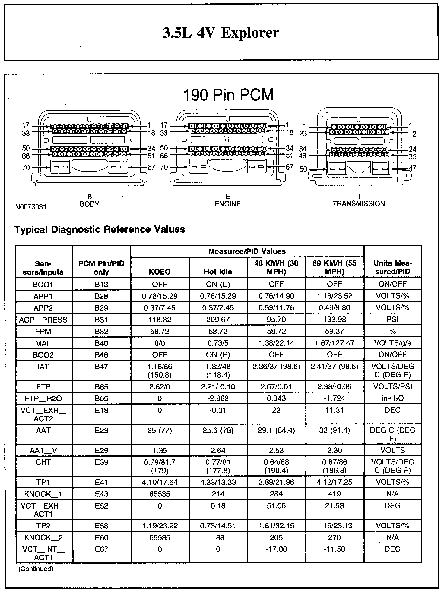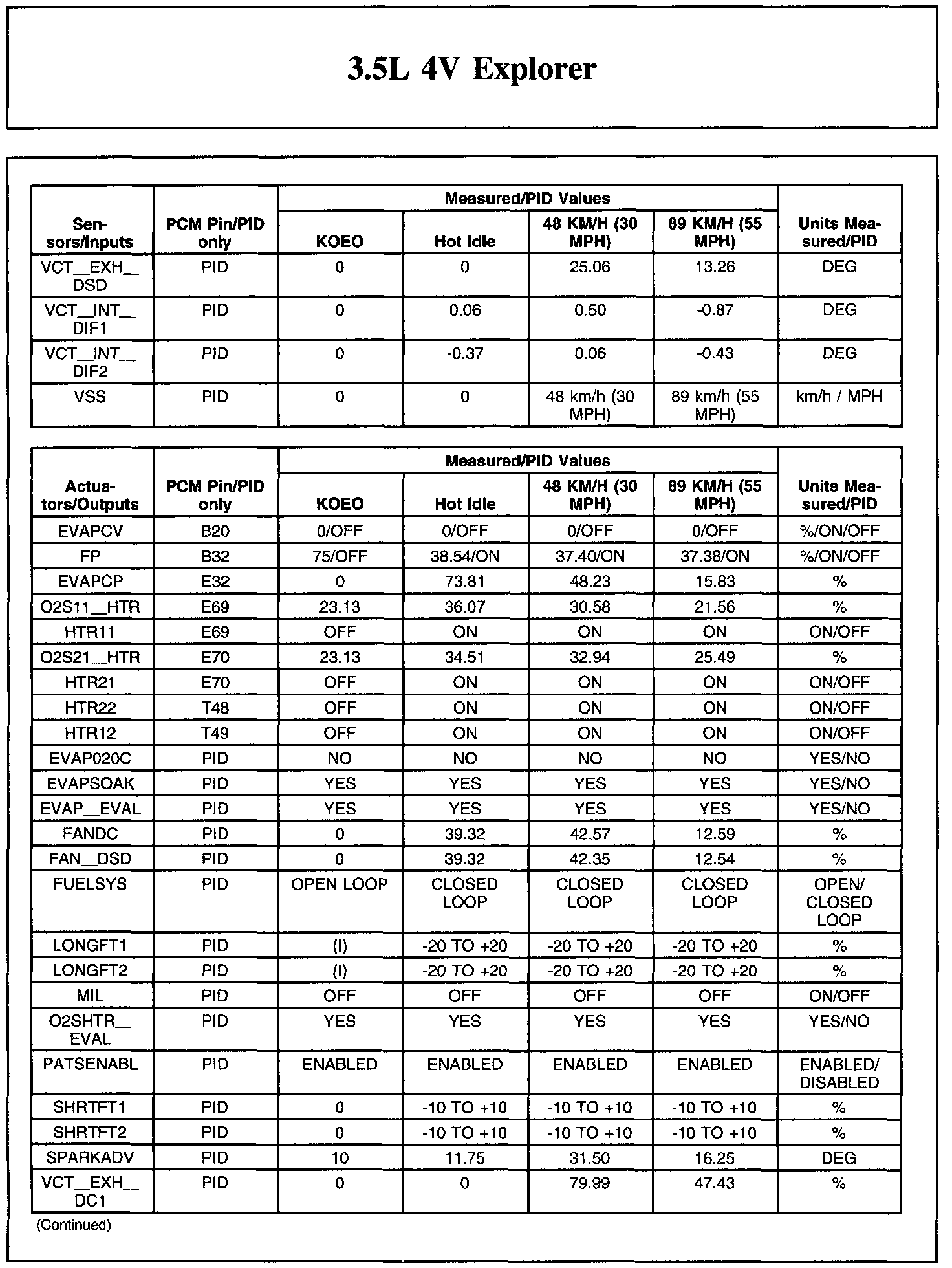 Home >> Ford >> 2011 >> Explorer AWD V6-3.5L >> Repair and Diagnosis >> Powertrain Management >> Computers and Control Systems >> Testing and Inspection >> Scan Tool Testing and Procedures >> Typical Diagnostic Reference Values