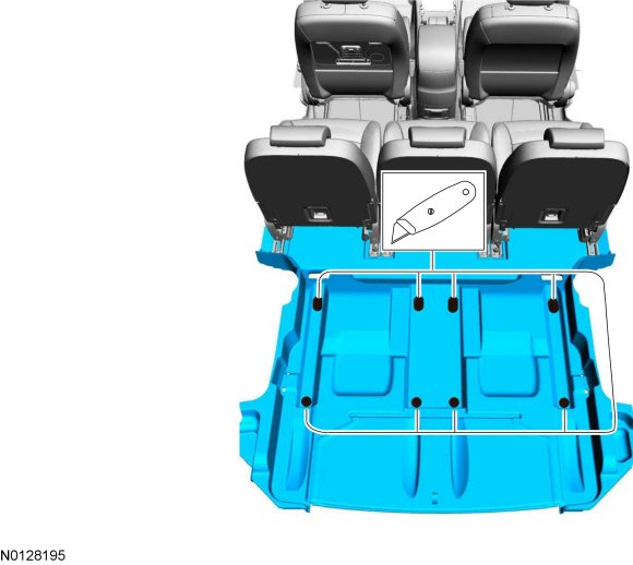 In the Illustration 4 example, service action symbols are shown as used to direct the application of sealer, lubricant, weight, tape or cleaning detergent to a component. In this example a bead diameter of "xx" millimeters is prescribed. The blue and white dashes indicate where the material is applied.