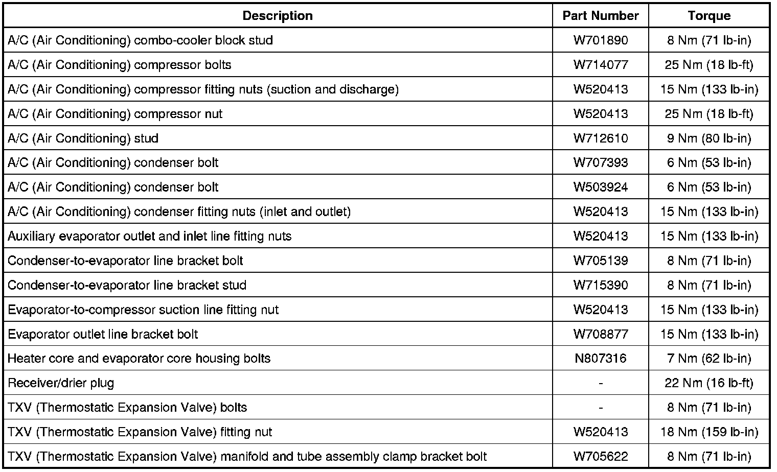 Torque Specifications