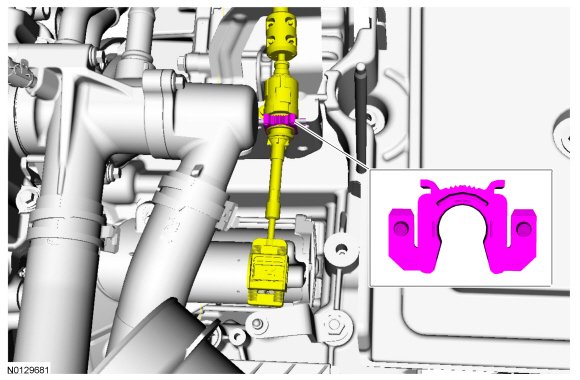 20. Disconnect the electrical connector and the wire harness retainer from the A/C (Air Conditioning) compressor.