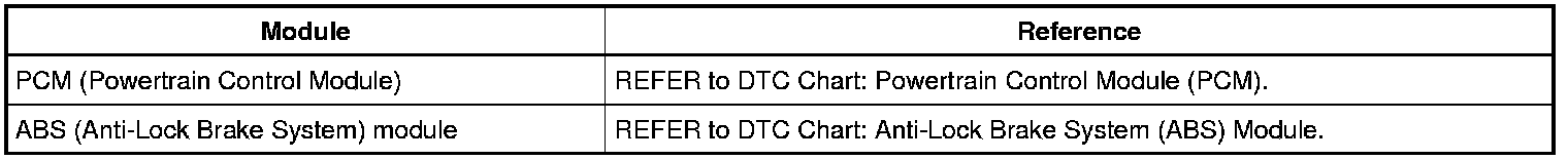 This table contains references to module DTC charts which are related to this system.