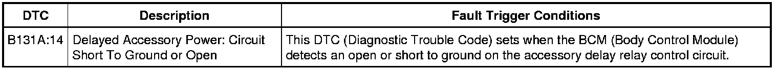 The accessory delay relay is controlled by the BCM (Body Control Module). REFER to Delayed Accessory Power Description and Operation for normal system operation.
