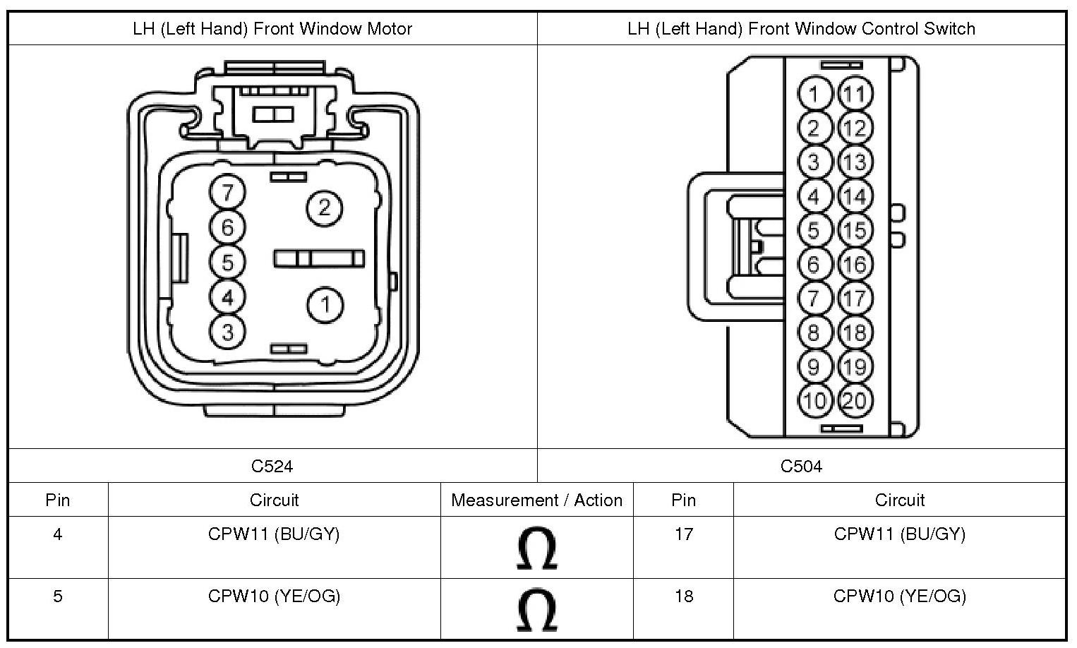 2. Disconnect: LH (Left Hand) Front Window Motor C524.