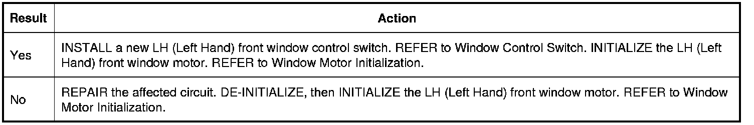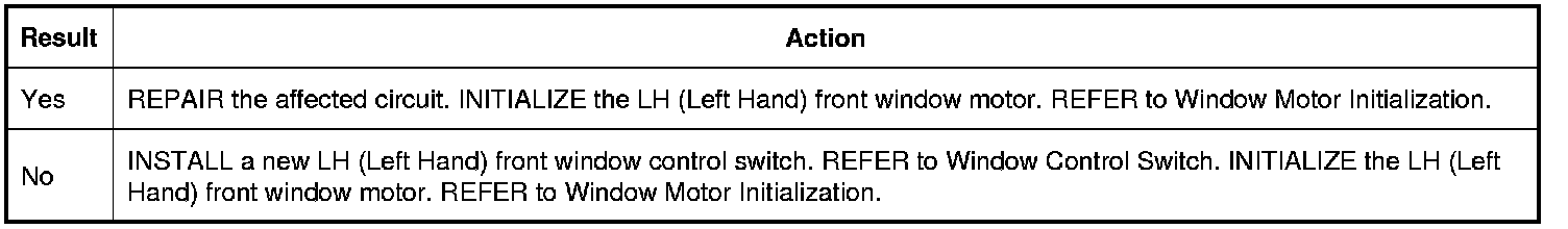 2. While pressing and releasing the LH (Left Hand) front window control switch, measure: