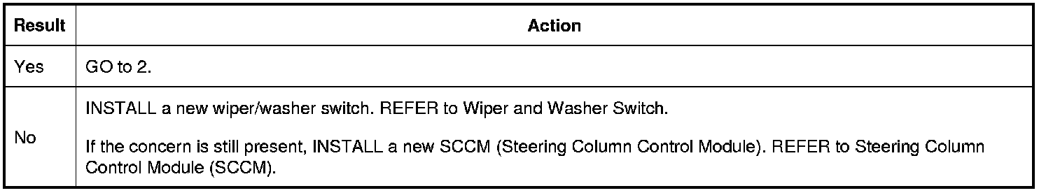 3. While cycling through all windshield wiper/washer switch positions, verify the status of each SCCM (Steering Column Control Module) PID (Parameter Identification) changes state: