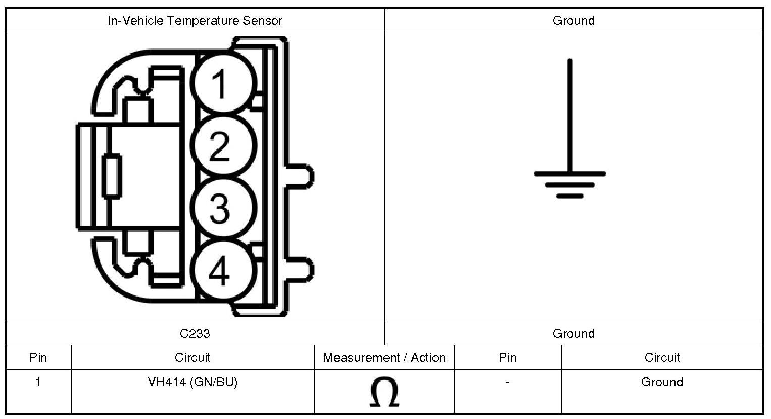 The in-vehicle temperature and humidity sensor receive a ground from the HVAC (Heating, Ventilation, and Air Conditioning) module. The sensor varies its resistance with the temperature. As the temperature rises, the resistance falls. As the temperature falls, the resistance rises. The HVAC (Heating, Ventilation, and Air Conditioning) module measures this resistance to determine the temperature at the sensor. The sensor DTCs (Diagnostic Trouble Codes) set if there is a fault in either the temperature or humidity part of the sensor or circuits.