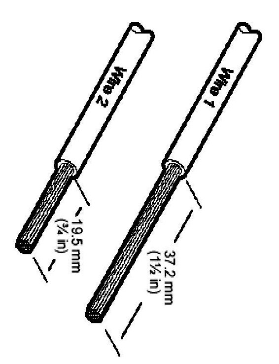 2. Strip 6.35mm (1/4 in) of insulation from each wire end, taking care not to nick or cut wire strands.