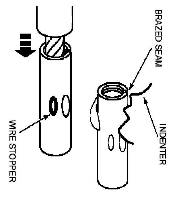 7. If visible, be sure to place the brazed seam toward the indenter.