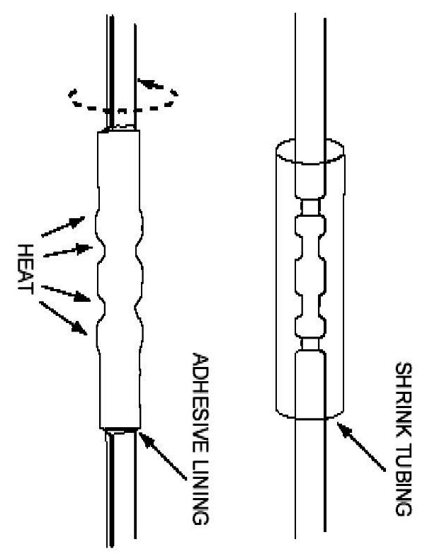 13. Use shielded heat gun to heat the repaired area until adhesive flows out of both ends of the heat shrink tubing.