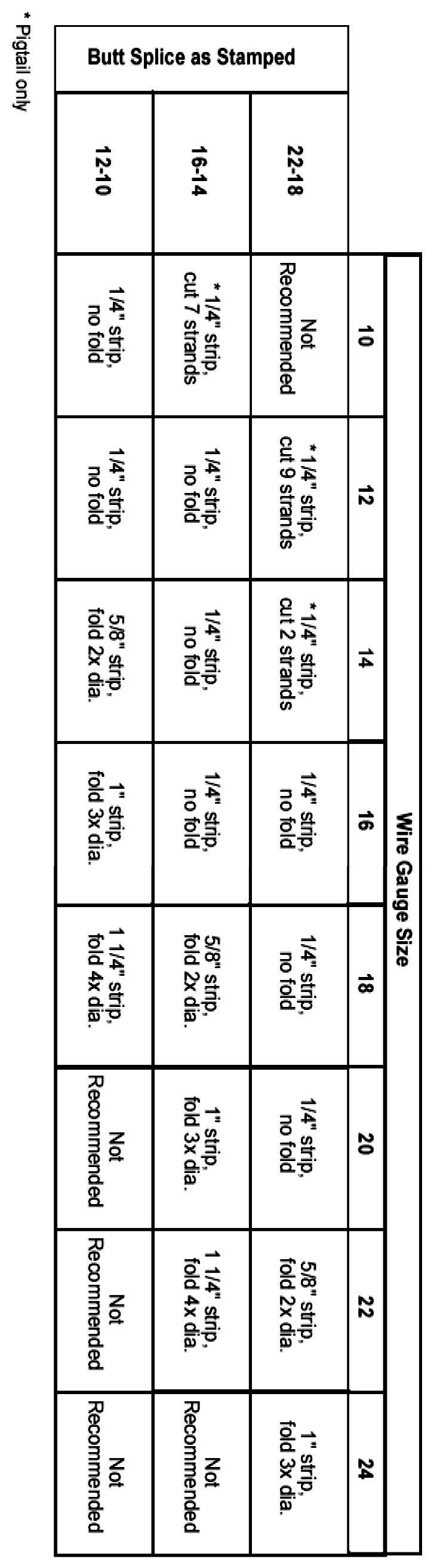 Recommended splicing method - Crimp (For 10-22 AWG Diameter Wire to Like Wire Diameter)