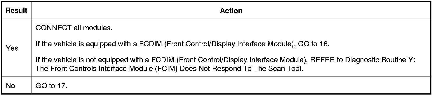 15. CHECK FOR RESTORED COMMUNICATION WITH THE FCIM (Front Controls Interface Module) AND THE FCDIM (Front Control/Display Interface Module) DISABLED