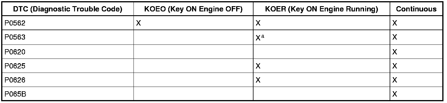 The PCM (Powertrain Control Module)-controlled, or Smart Charge charging system determines the optimal voltage setpoint for the charging system and communicates this information to the voltage regulator. The Smart Charge charging system is designed to set 1 of 6 DTCs (Diagnostic Trouble Codes) any time a charging system fault is present. All of the DTCs (Diagnostic Trouble Codes) can set continuous faults, but not all DTCs (Diagnostic Trouble Codes) set as on-demand faults.