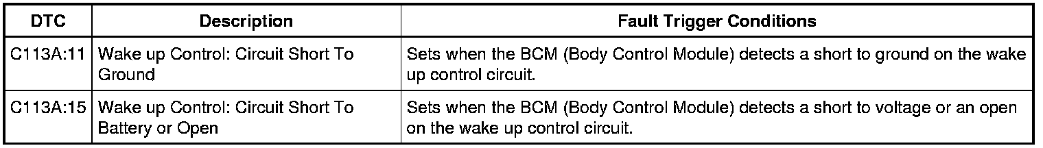 The BCM (Body Control Module) activates the wake-up control circuit when: