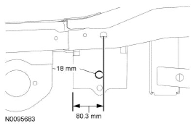 Mark the position of the attachment hole, on the new frame bracket, by inserting a marker through the existing forward bed floor pan hole. Drill an 18 mm (0.708 in) hole into the new frame bracket.