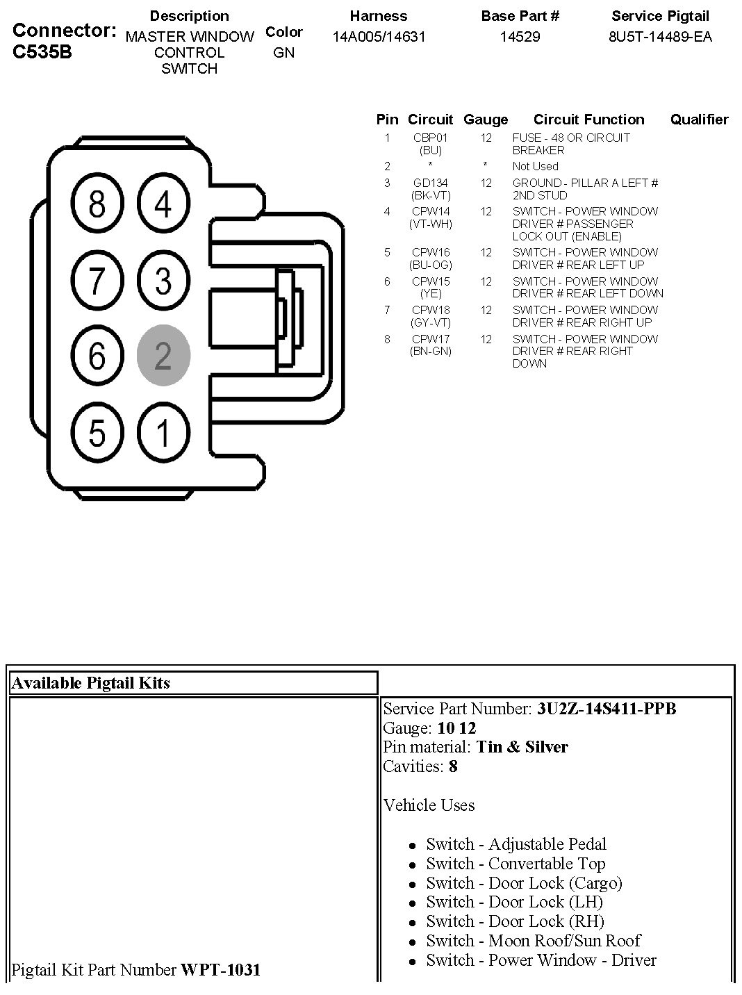 C535B Master Window Control Switch