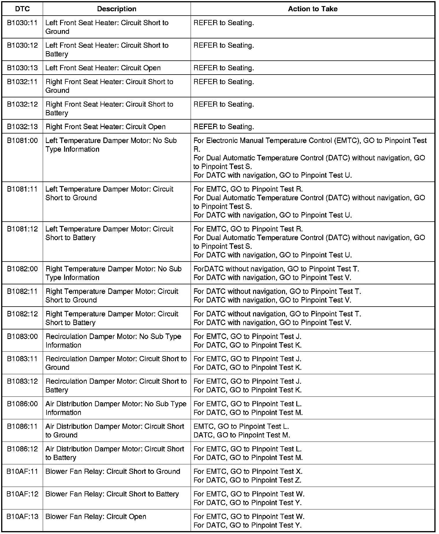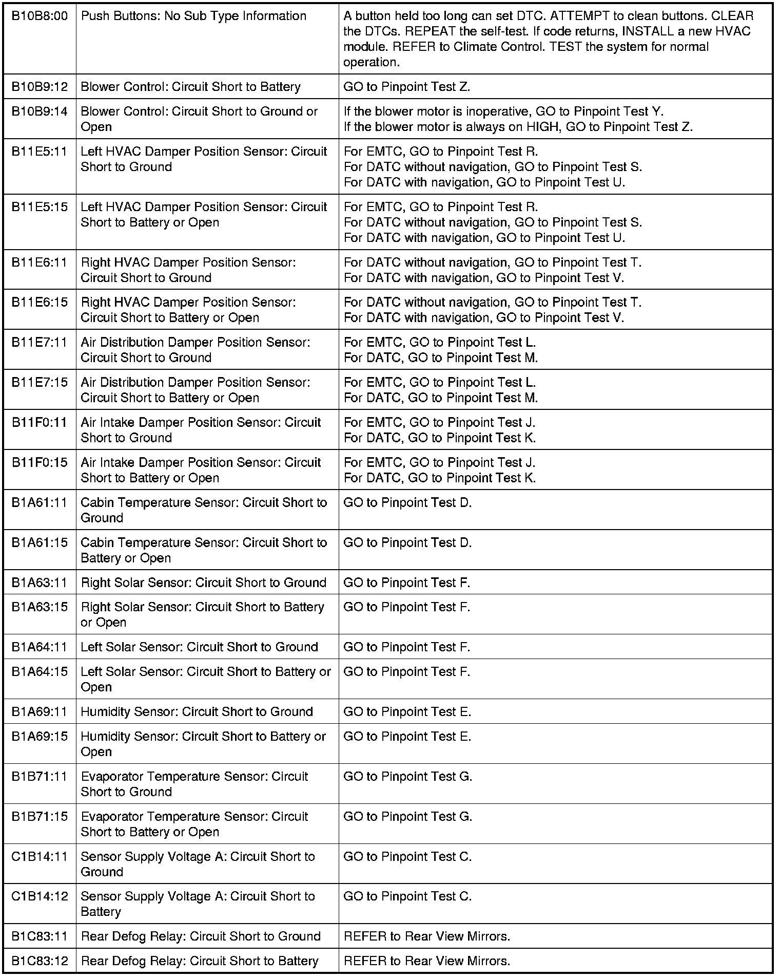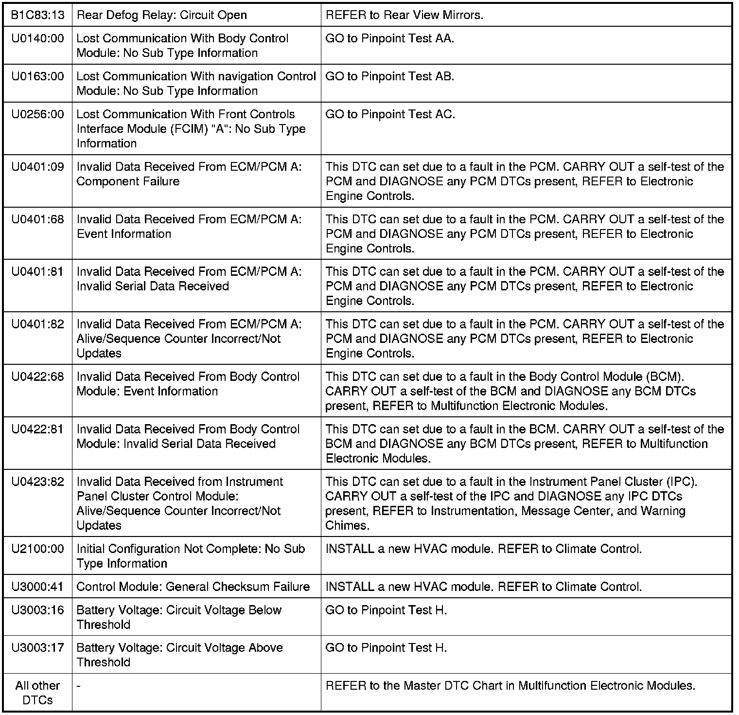 HVAC Module DTC Chart