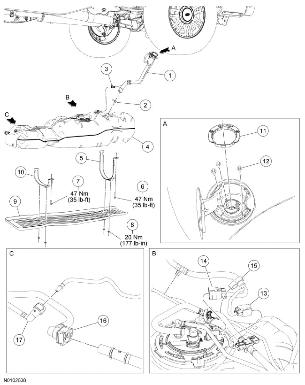 Fuel Tank and Filler Pipe - Exploded View