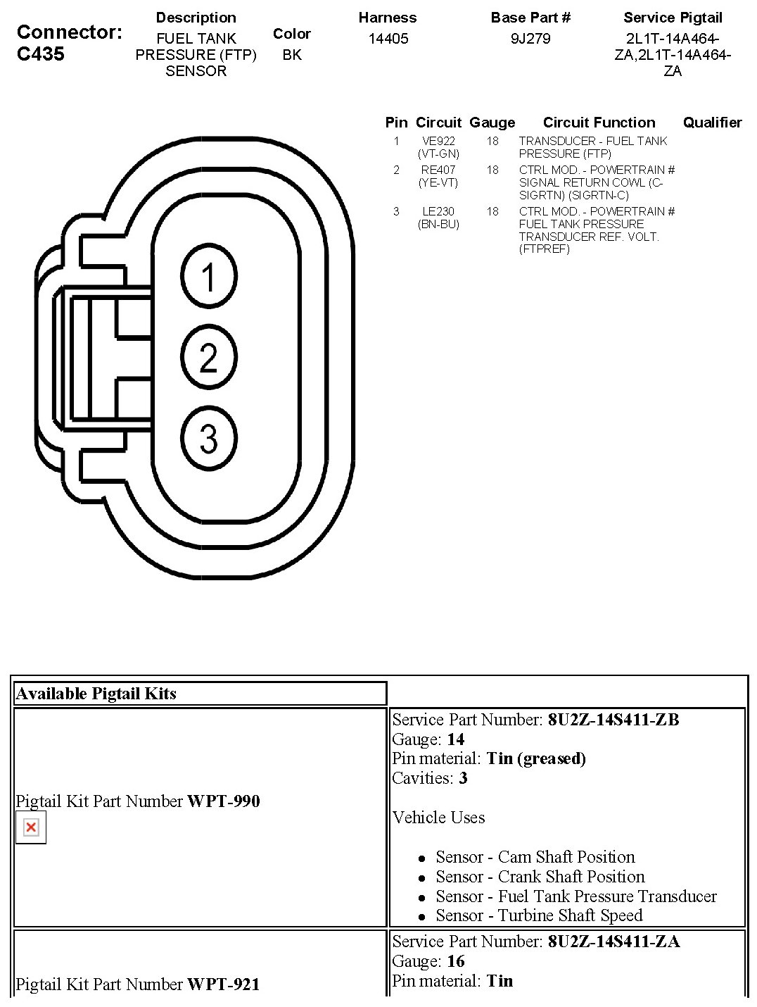 Fuel Tank Pressure Sensor: Diagrams