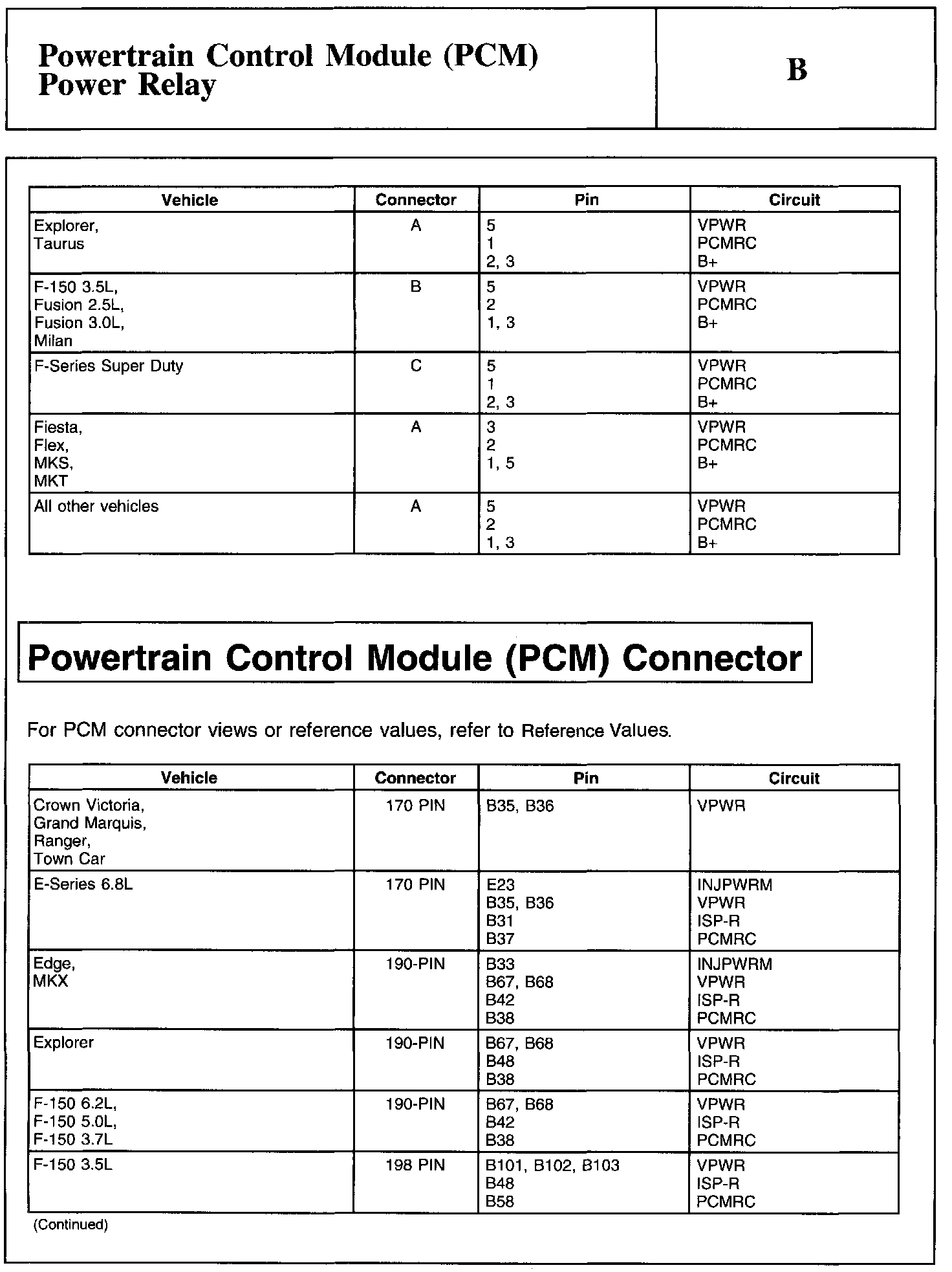 Home >> Ford >> 2011 >> F 150 2WD V8-5.0L >> Repair and Diagnosis >> Powertrain Management >> Computers and Control Systems >> Testing and Inspection >> Pinpoint Tests >> Test B: Powertrain Control Module (PCM) Power Relay