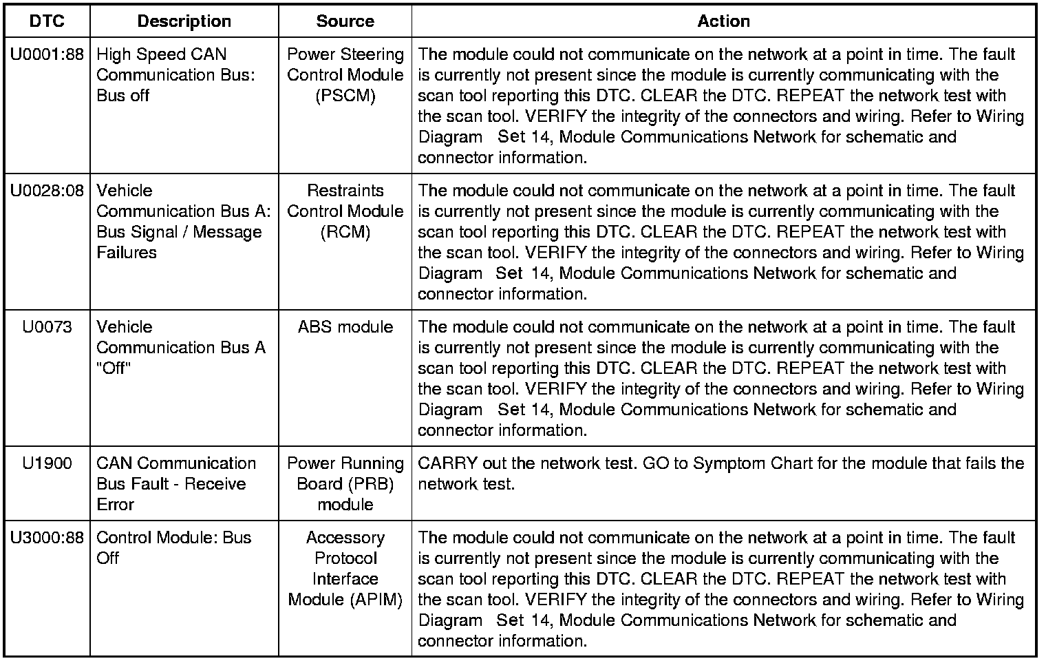 Home >> Ford >> 2011 >> F 150 2WD V8-6.2L >> Repair and Diagnosis >> Powertrain Management >> Computers and Control Systems >> Information Bus >> Testing and Inspection >> Diagnostic Trouble Code Tests and Associated Procedures >> Module Communications Network - DTC Charts