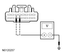 - Measure the voltage between the audio DSP module, harness side and ground as follows: