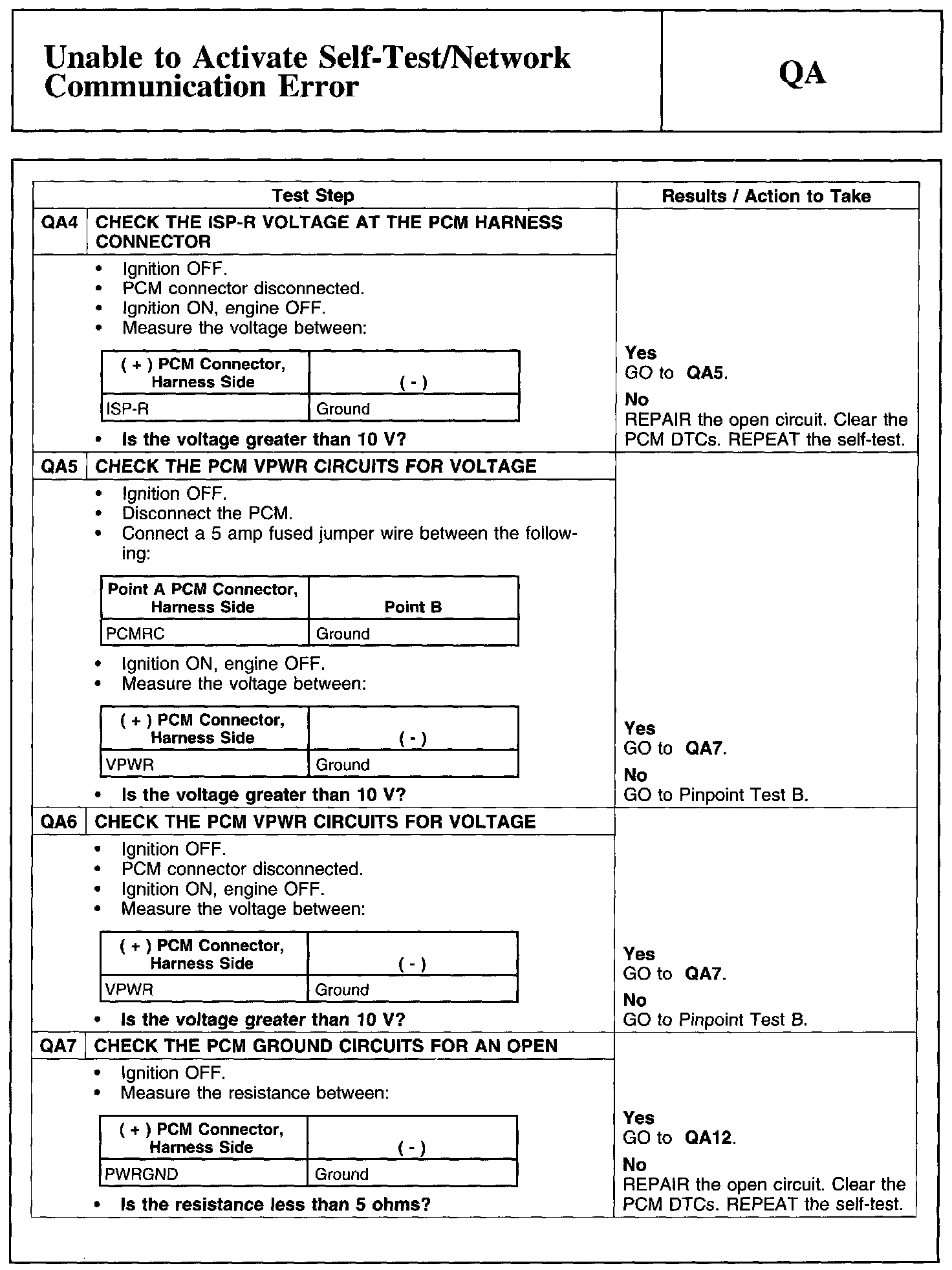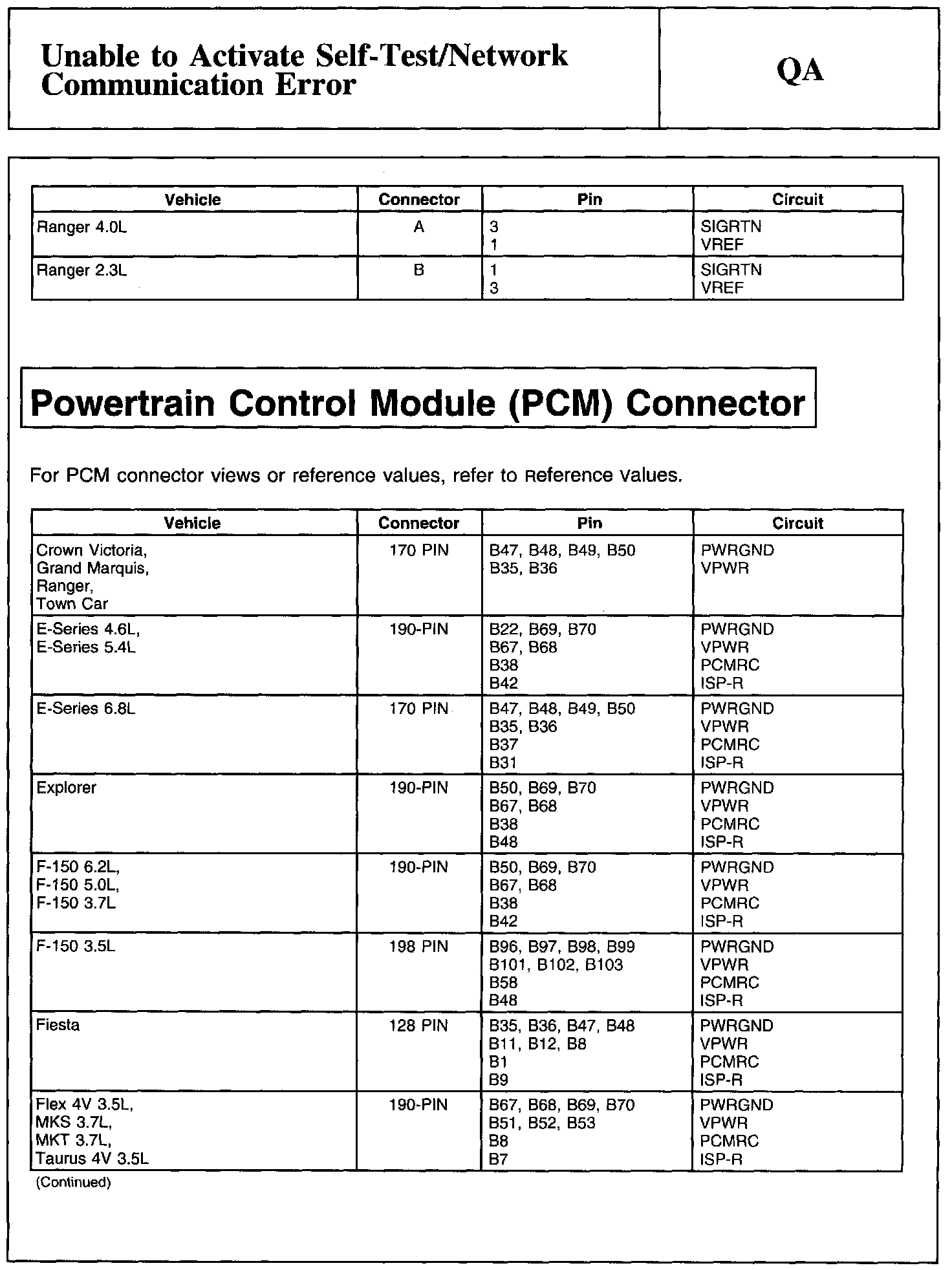 Home >> Ford >> 2011 >> F 150 2WD V8-6.2L >> Repair and Diagnosis >> Powertrain Management >> Computers and Control Systems >> Testing and Inspection >> Pinpoint Tests >> Test QA: Unable to Activate Self-Test/Network Communication Error