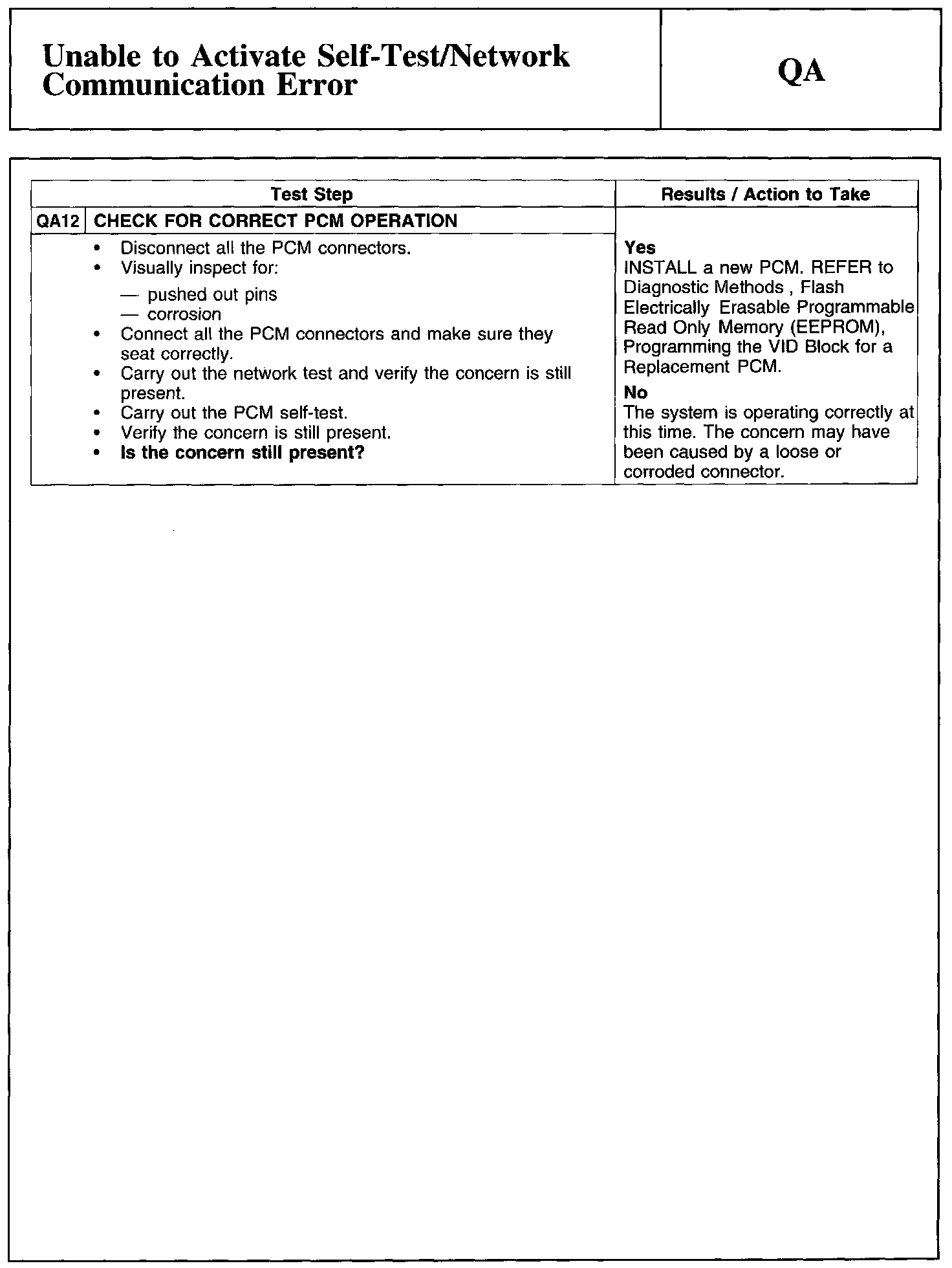 Test QA: Unable to Activate Self-Test/Network Communication Error