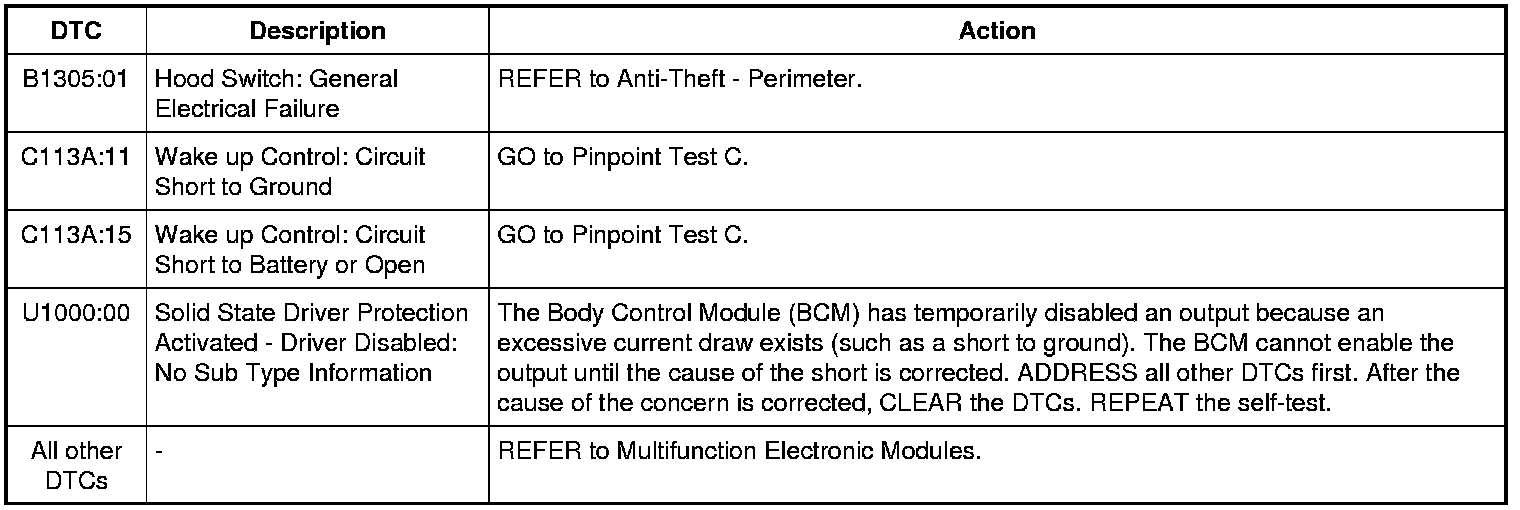Body Control Module (BCM) DTC Chart