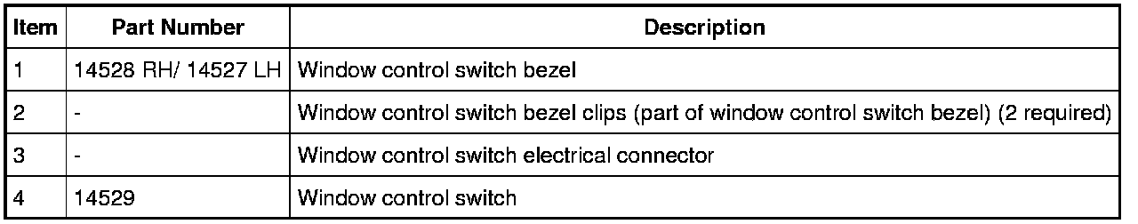 1. Using a suitable trim tool, release the 2 clips on the outer edge of the window control switch bezel and pull the window control switch assembly straight upward.