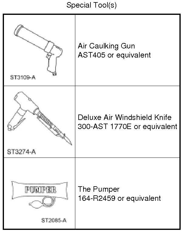 8. NOTICE: Be sure to use the same brand and cure-rate products for the urethane adhesive and glass primer. Do not mix different brands of urethane adhesive and glass primer. Refer to the Material Chart in this procedure.
