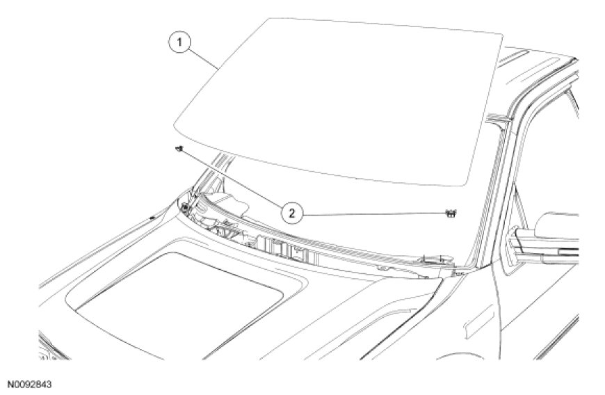 1. Remove the cowl panel grille. For additional information, refer to Front End Body Panels Service and Repair.