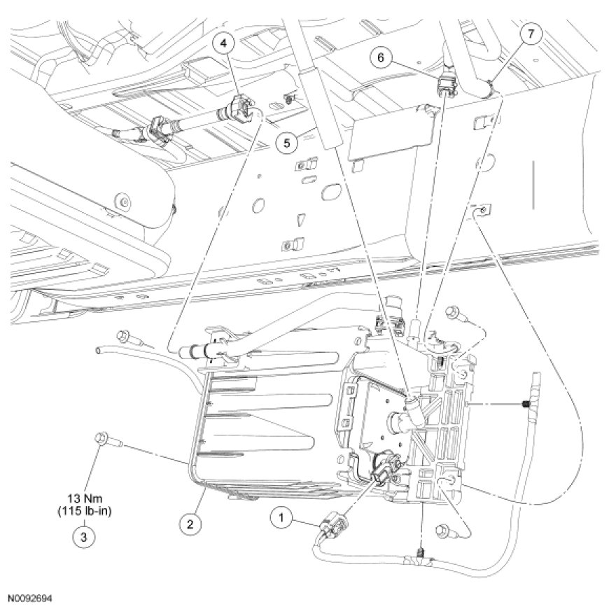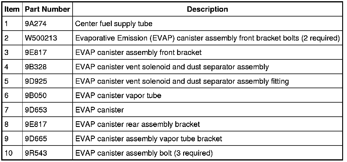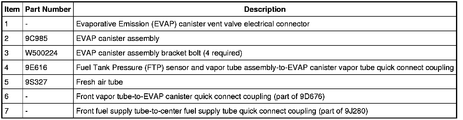 EVAP Canister, Brackets, Vent Solenoid and Dust Separator Assembly, Center Fuel Tube and Vapor Tube Disassembly