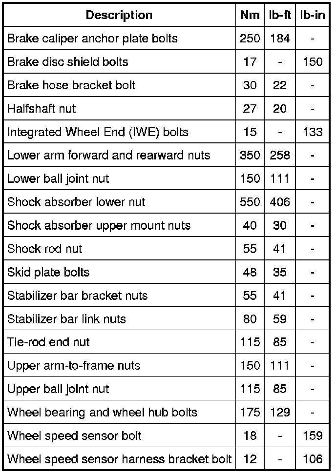 Torque Specifications
