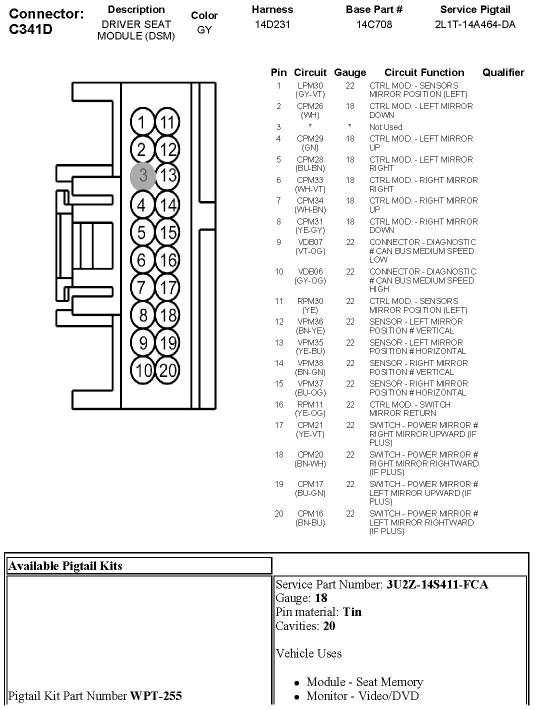 C341D Driver Seat Module (DSM)