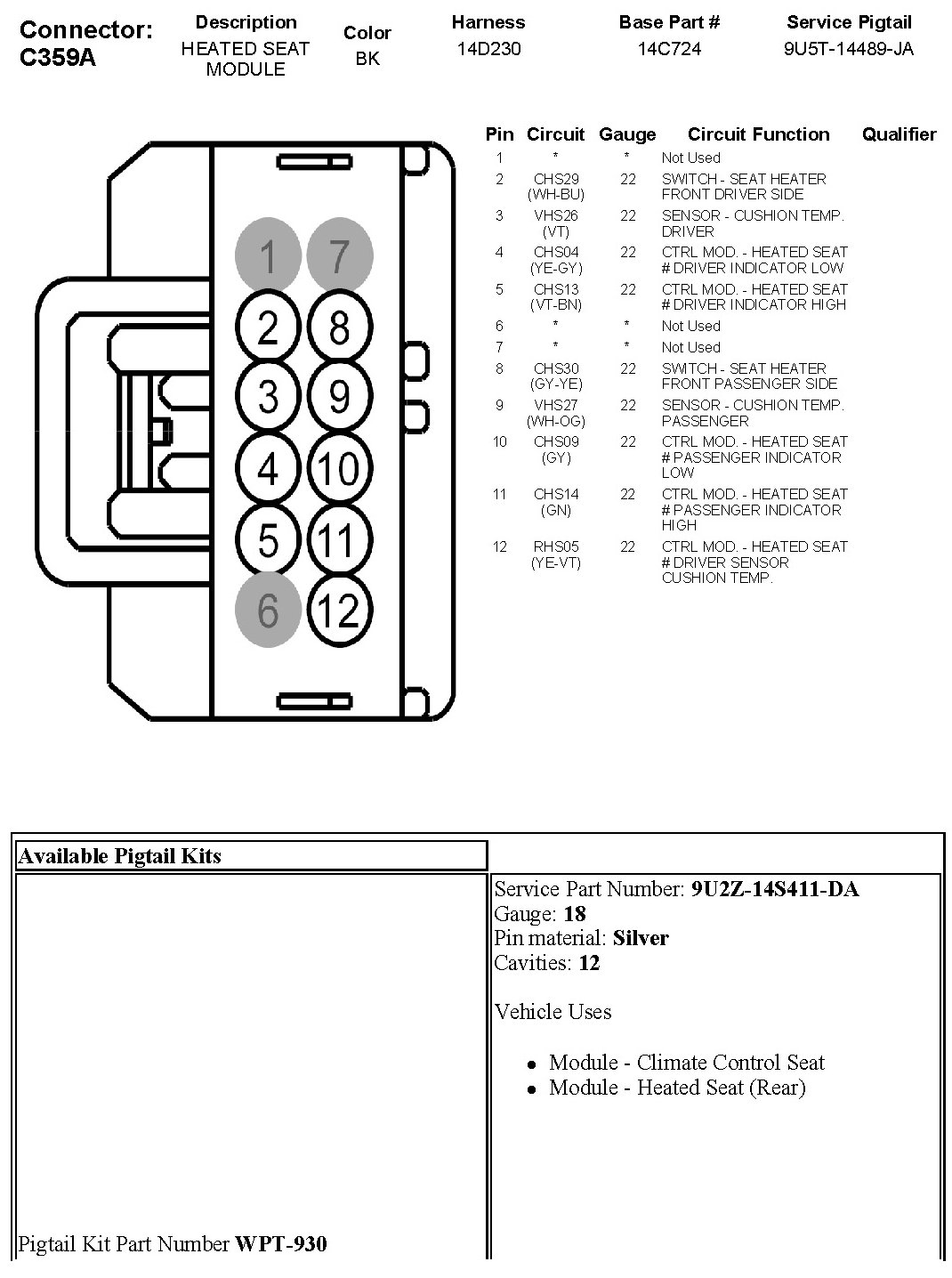 C359A Heated Seat Module