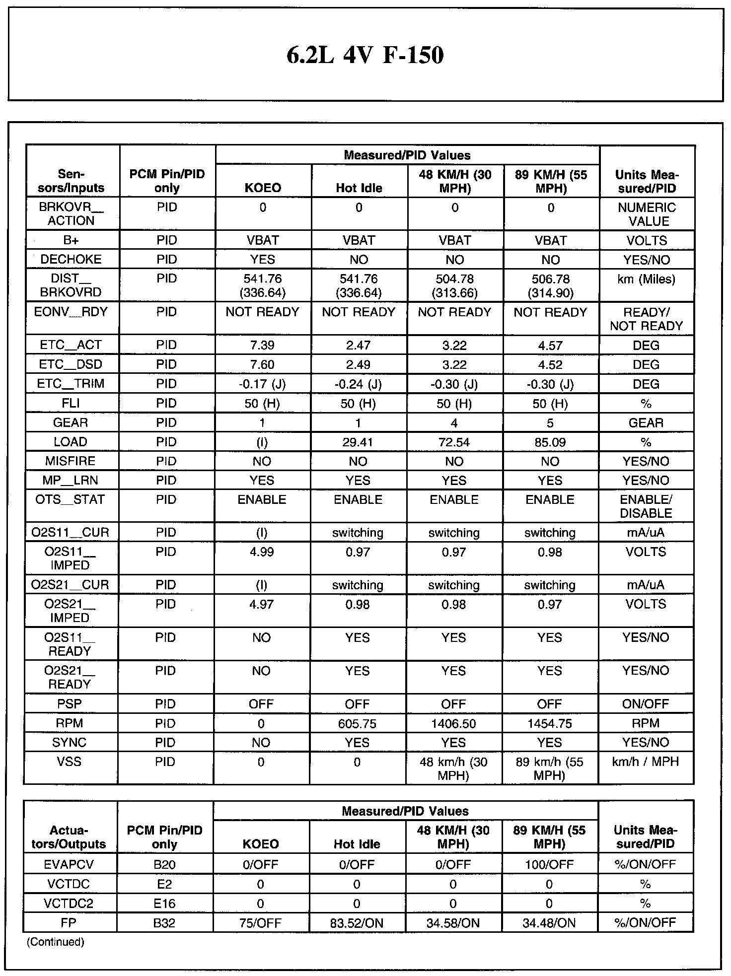 Home >> Ford >> 2011 >> F 150 4WD V8-6.2L >> Repair and Diagnosis >> Powertrain Management >> Computers and Control Systems >> Testing and Inspection >> Scan Tool Testing and Procedures >> Typical Diagnostic Reference Values