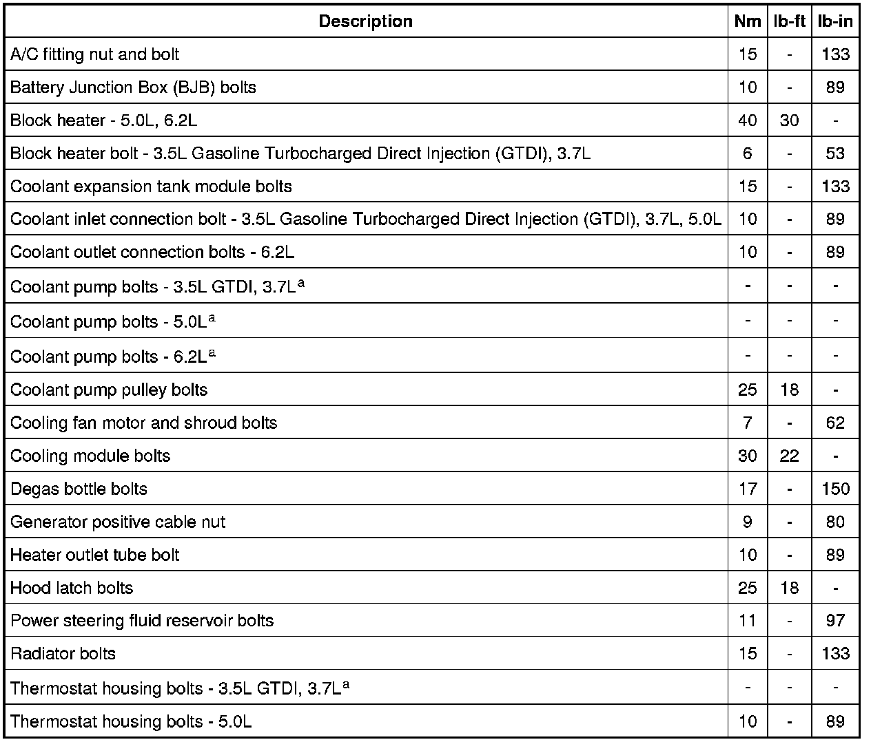 Torque Specifications