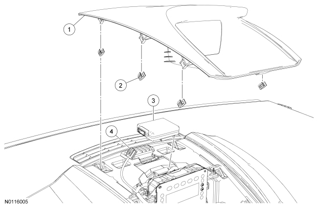 1. Remove the instrument panel upper finish panel. For additional information, refer to Instrument Panel and Console Instrument Panel Finish Panel.