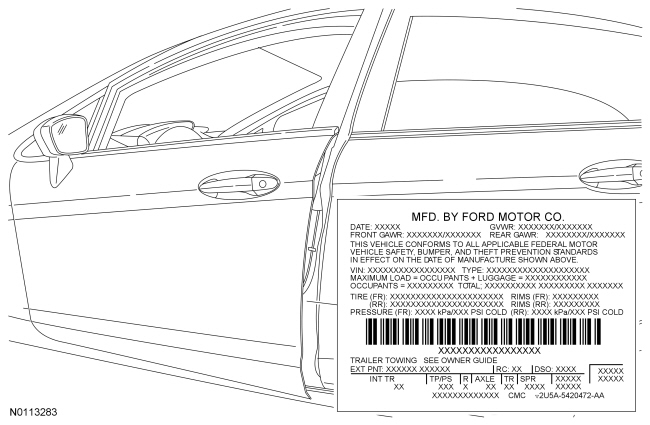 The Vehicle Certification (VC) label contains the manufacturer name, the month and year of manufacture, the certification statement and the Vehicle Identification Number (VIN). It also includes Gross Vehicle Weight Rating (GVWR) and tire information.