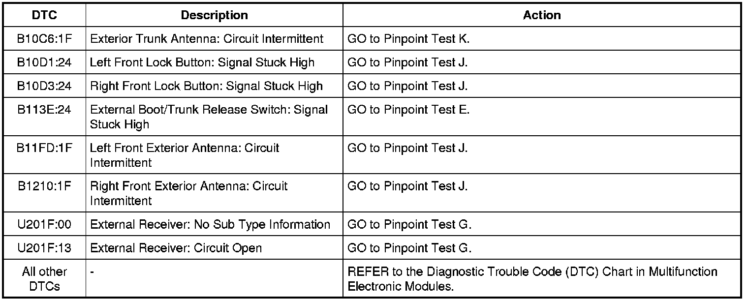 Remote Function Actuator (RFA) Module DTC Chart