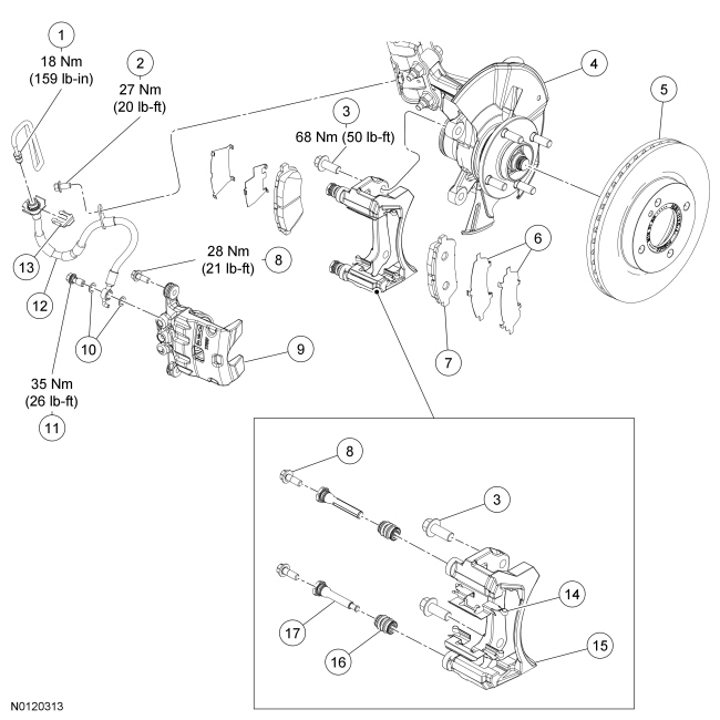 NOTE: If installing new brake pads, install all of the new hardware and lubricant supplied with the brake pad kit.