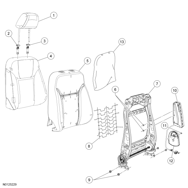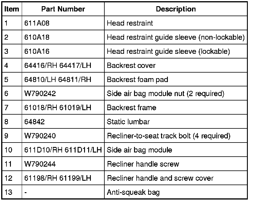 NOTE: Refer to Seat Backrest - Front Seat Backrest - Front for recliner-to-seat track bolt and side air bag module nut tightening sequence and torque specification.