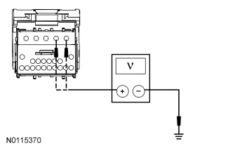- Measure the voltage between the RFA module, circuit SBP09 (RD), harness side and ground; and C3503A-2, circuit SBP14 (BN/RD), harness side and ground.