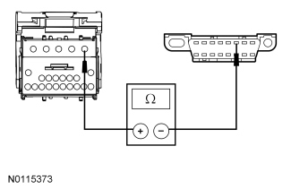 - Measure the resistance between the RFA module, circuit VDB06 (GY/OG), harness side and the DLC C251-3, circuit VDB06 (GY/OG), harness side.