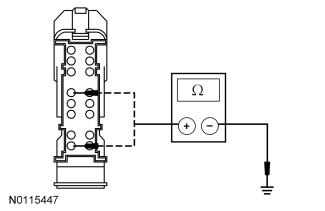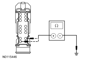 - Measure the resistance between the BCM C2280B-7, circuit GD115 (BK/GY), harness side and ground; and C2280B-16, circuit GD115 (BK/GY), harness side and ground.