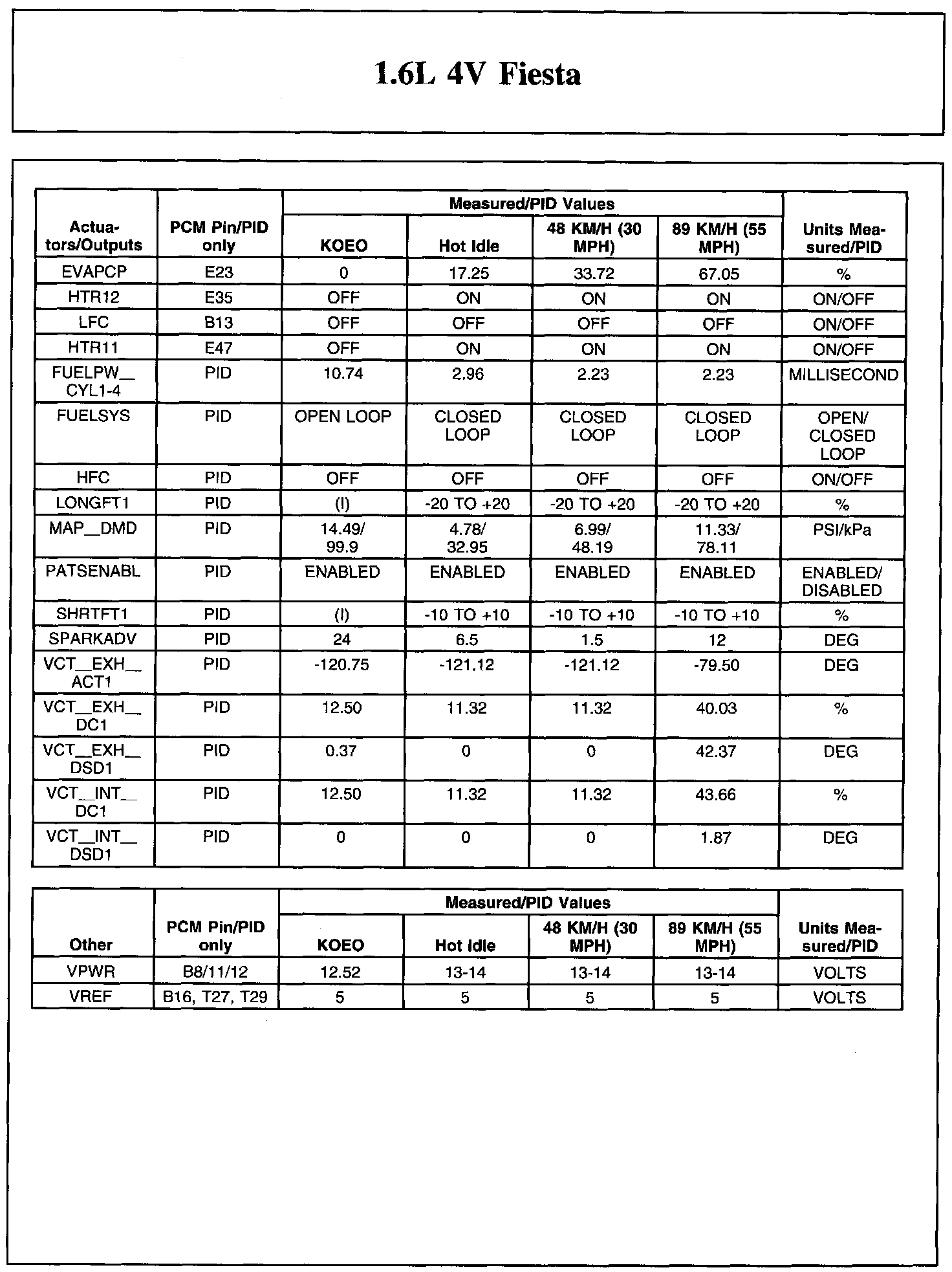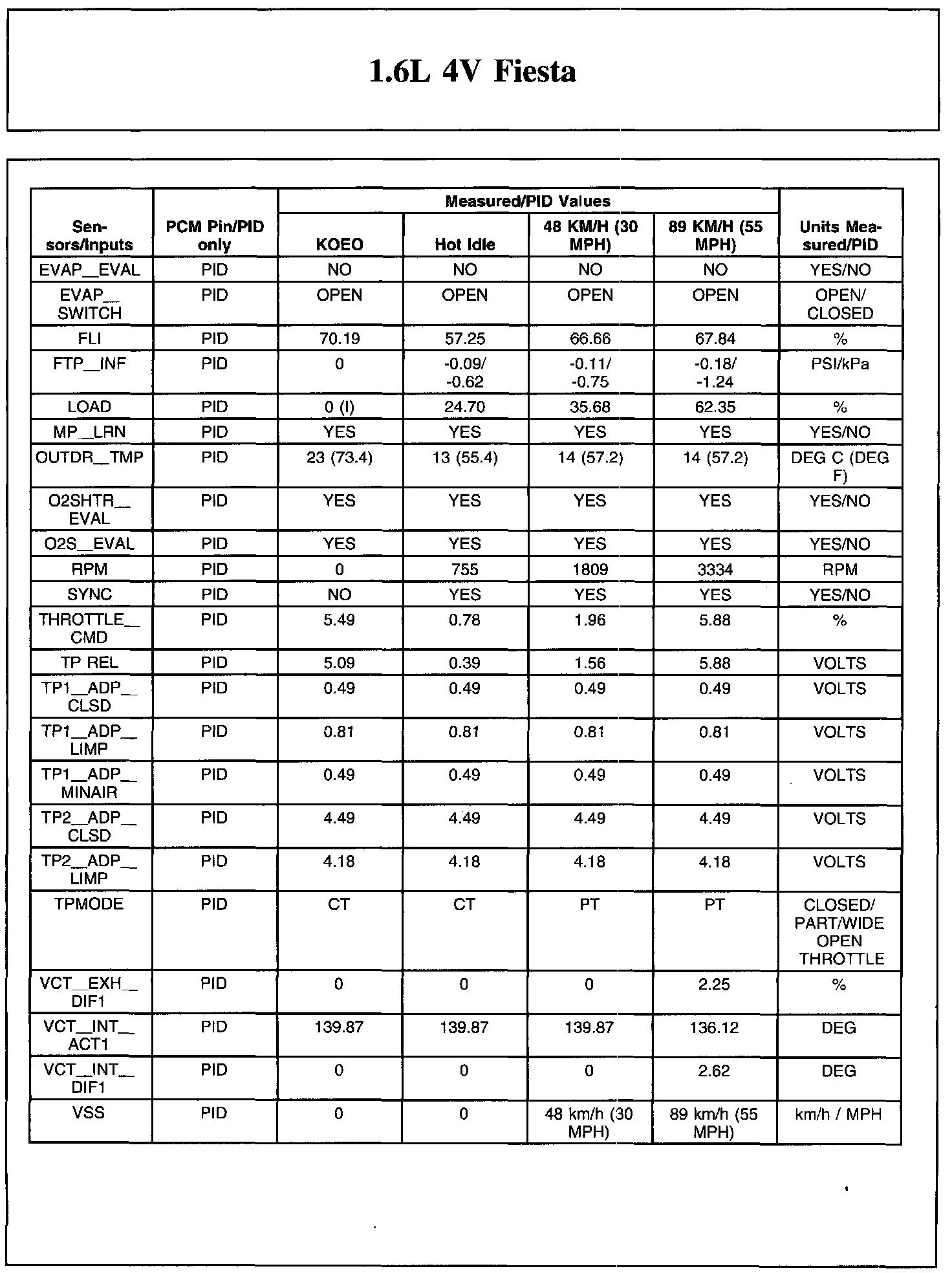 Home >> Ford >> 2011 >> Fiesta L4-1.6L >> Repair and Diagnosis >> Powertrain Management >> Computers and Control Systems >> Testing and Inspection >> Scan Tool Testing and Procedures >> Typical Diagnostic Reference Values