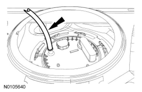 Disconnect the fuel tank jumper tube-to-FP module quick connect coupling. For additional information, refer to Fuel System - General Information Service and Repair.