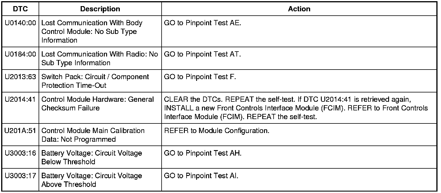 Front Controls Interface Module (FCIM) DTC Chart - With Navigation