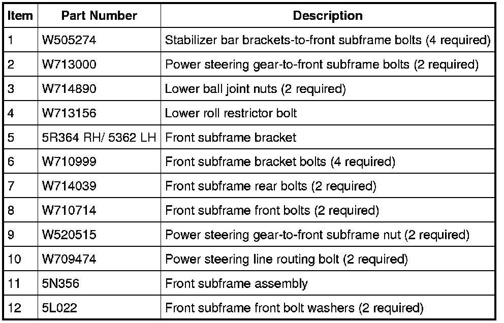 Remove and discard the subframe bracket-to-body bolts.