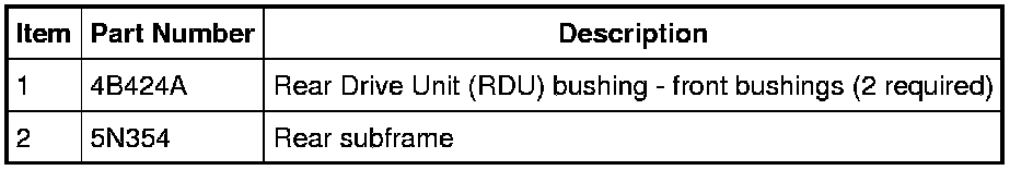 NOTE: There are 2 Rear Drive Unit (RDU) front bushings in the rear subframe. This procedure shows how to remove one bushing. The procedure for the remaining RDU bushing is identical.